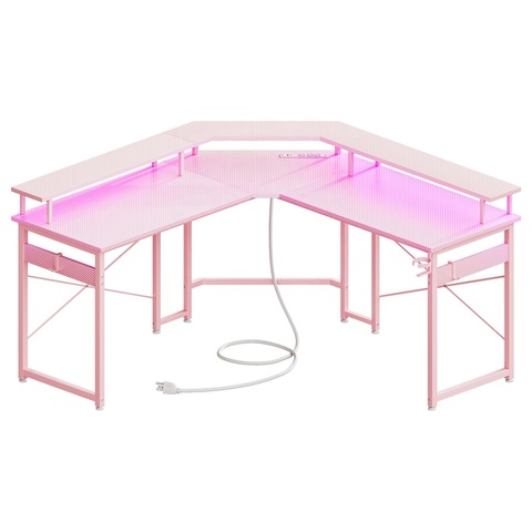 핑크 컴퓨터 데스크탑 컴퓨터 대형 L 자형 핑크 컴퓨터 책상 핑크 RGB LED 게임용 책상